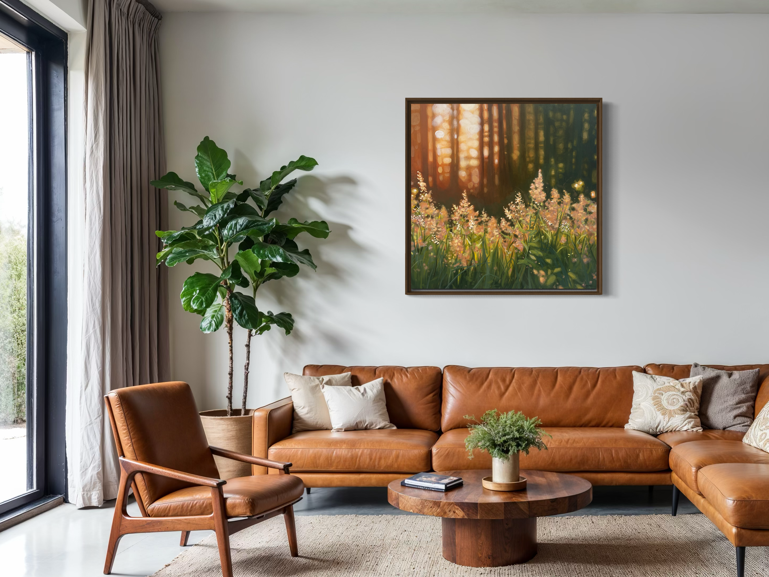 Framing: Elevate your canvas print by adding a 2” deep hand-crafted wood float frame in walnut, black walnut, maple, and white oak, available below.