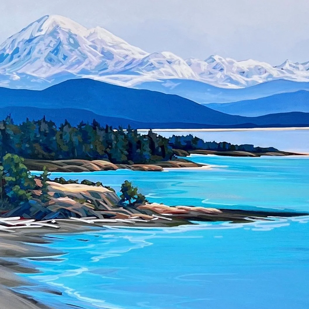 Victoria in a nutshell. Mt. Baker and the Olympic range, layers of the Gulf and San Juan Islands, framed by a sandy beach and (almost) tropical waters. How lucky to live here!