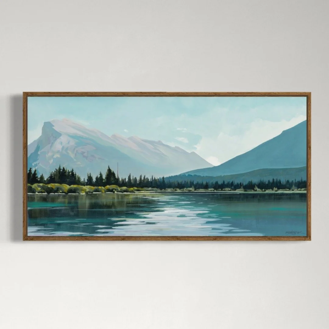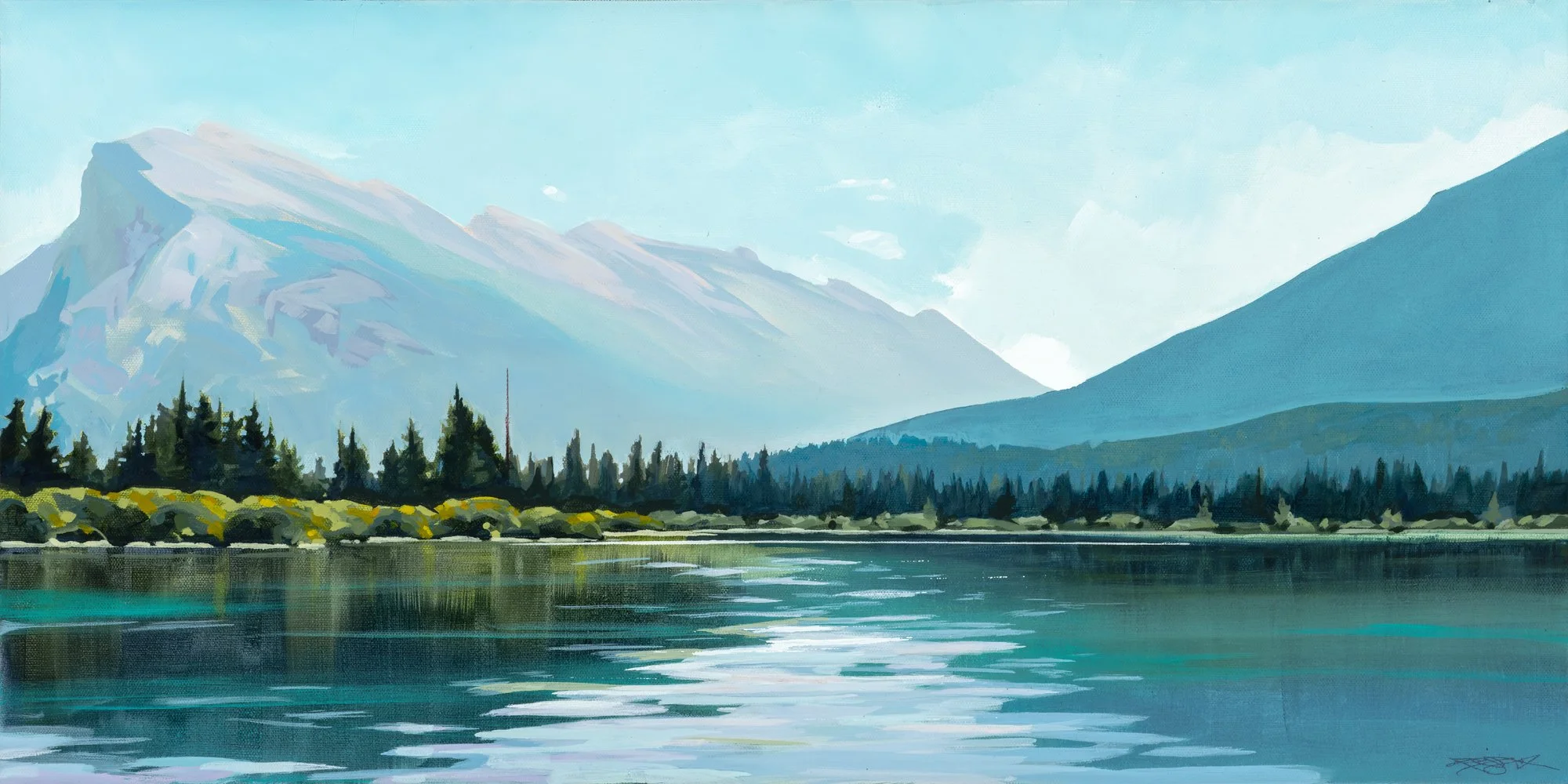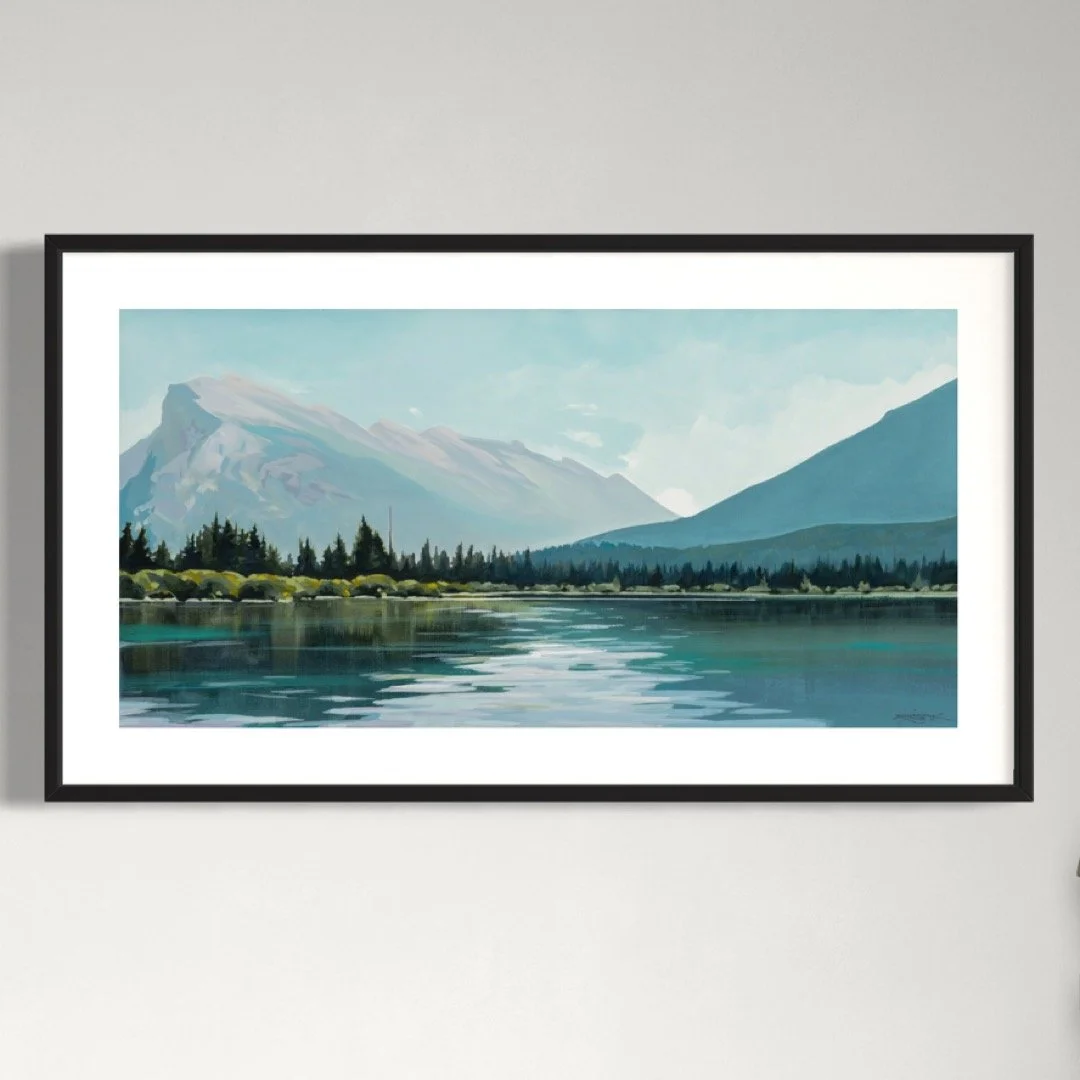 An archival quality print of the original painting SILENT REFLECTION. Reference photo: Vermillion Lakes, Banff, AB.