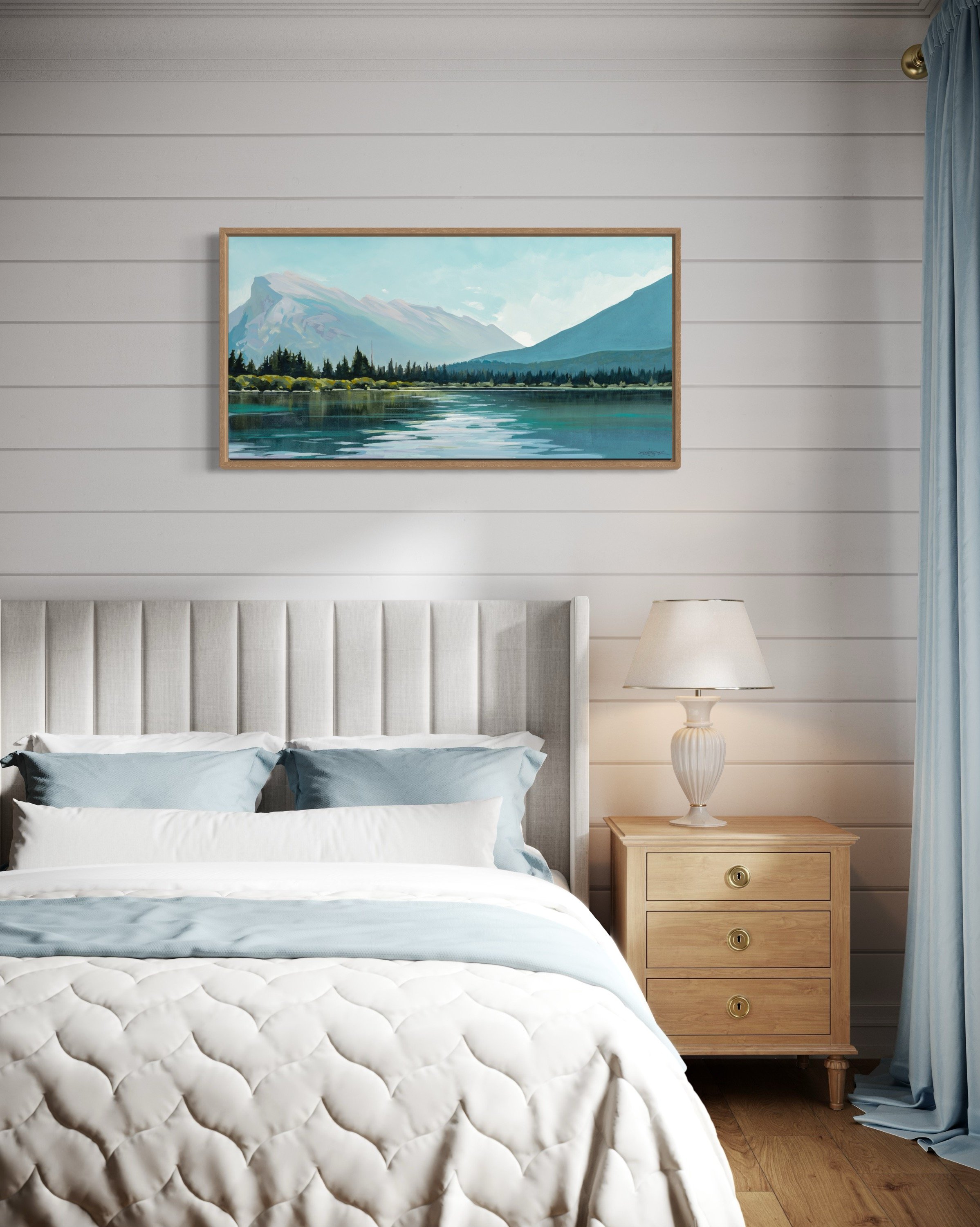 Stretched Mounted Canvas: Closely resembling an original canvas painting, with a mirror-image edge, it comes wired and ready to hang. Stretched on 1.5” deep, sustainably sourced, kiln dried stretcher bars. Made with the highest in industry standards. The canvas is acid-free and pH neutral for a truly archival canvas. Printed on award-winning, OBA free, museum-grade, Breathing Color LYVE canvas with a satin sheen finish.