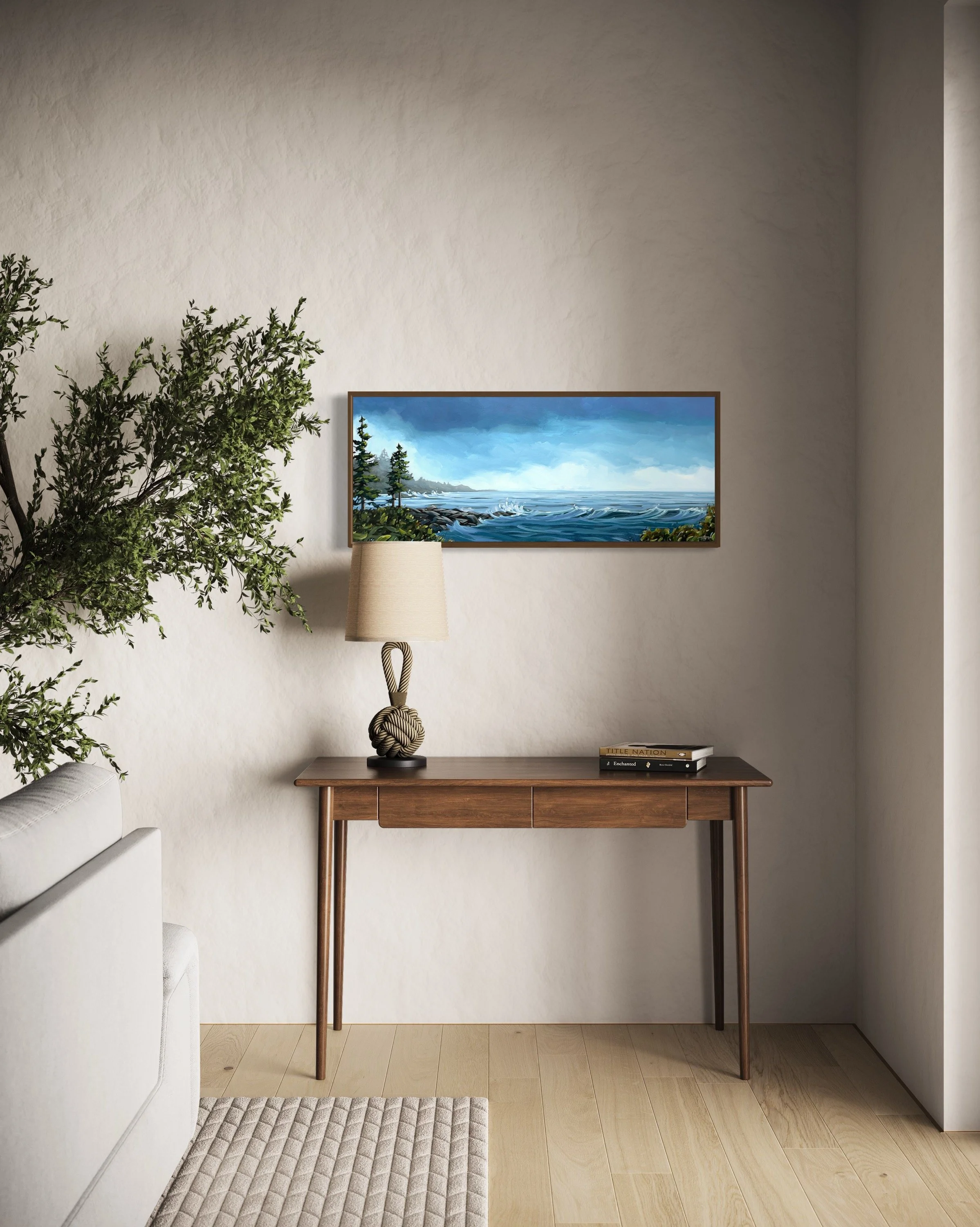 An original acrylic painting on canvas. Unframed, varnished for UV protection, signed front and back, ready to hang, sides are painted a complimentary colour.