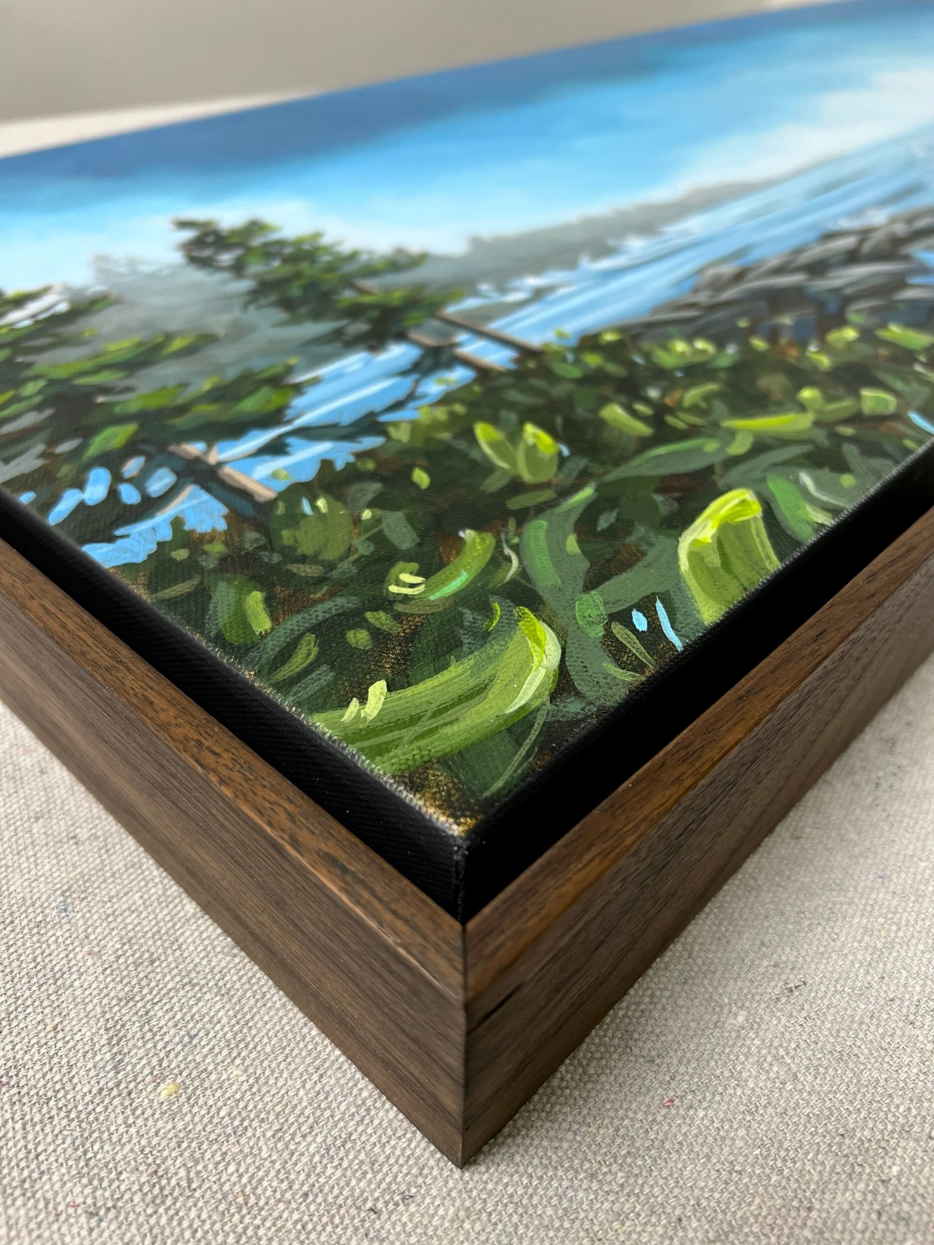 Hand made wood float frame in walnut, maple, white oak and more available here : Add Frame