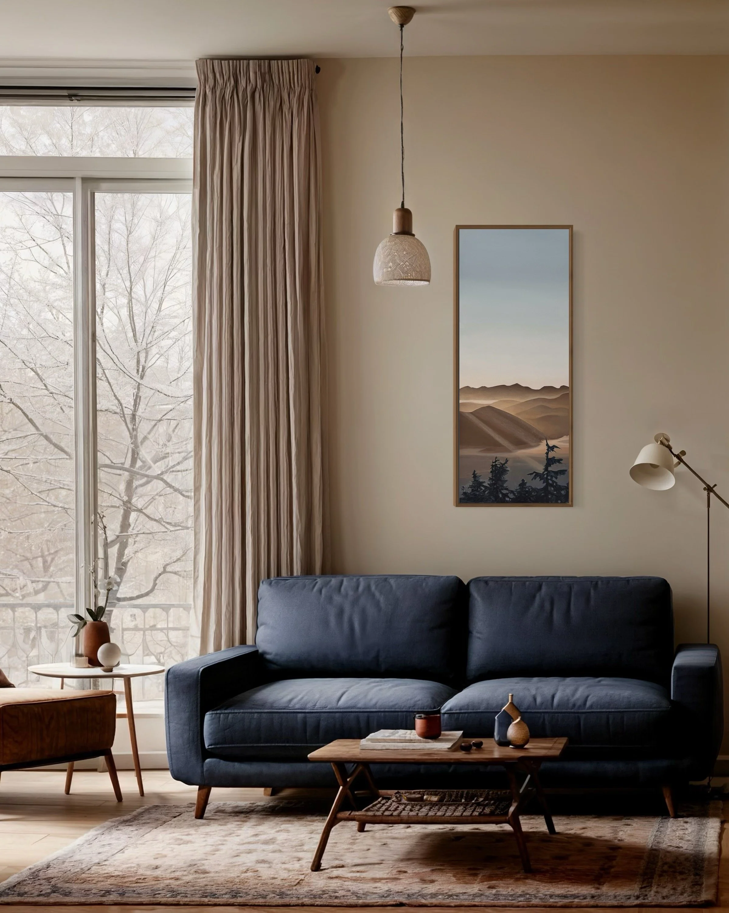 Inspired by the warm, low light of a west coast autumn. Intense sunbeams light up ocean mist and outline the stacked mountain ranges. The photo reference used was kindly lent by Marco Firouz.